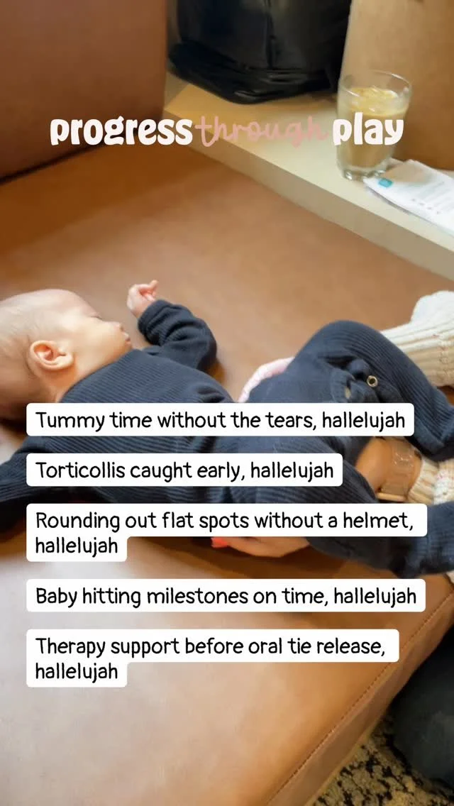 Progress Through Play is a holistic pediatric therapy practice rooted in the belief that a baby’s development is about so much more than hitting milestones—it’s about connection, regulation, and whole-body wellness. We specialize in supporting infants with feeding challenges, oral ties, torticollis, flat head shapes, tummy time struggles and motor delays, using a gentle, individualized approach that honors the baby’s nervous system and the caregiver’s intuition. What sets us apart is the time and space we give to each family. Sessions are unhurried, play-based, and deeply collaborative. We believe healing and progress happen best when parents feel empowered and babies feel safe.